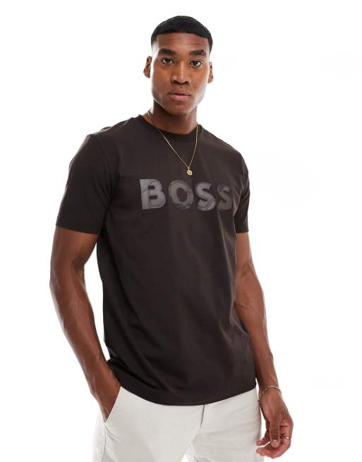 BOSS Green - T-shirt marrone scuro con logo applicato