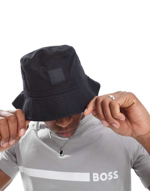 BOSS - Cappello da pescatore nero con logo
