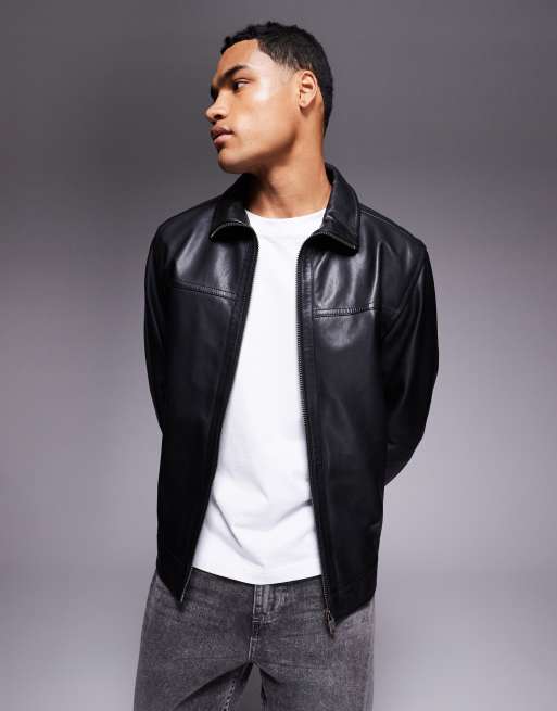 BOSS Orange - Jorest - Giacca harrington in pelle nera vestibilità classica