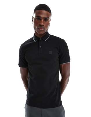 BOSS Orange - Passertip Icon - Polo piqué nera slim fit con logo e righe a contrasto sui bordi