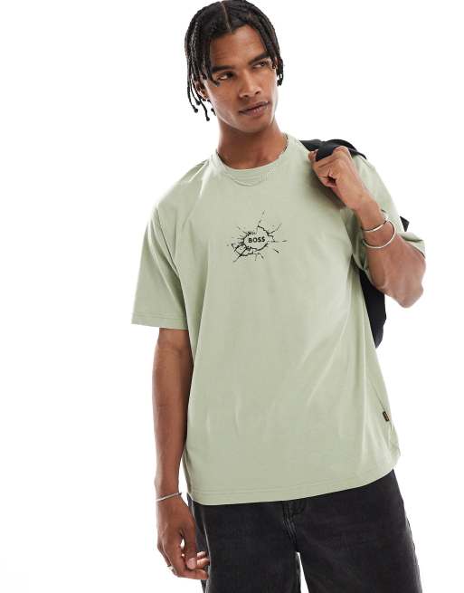 BOSS Orange - T-shirt vestibilità comoda verde con logo piccolo sul petto e grafica