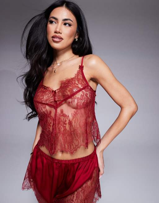 Boux Avenue - Completo in pizzo rosso con canottiera e pantaloncini