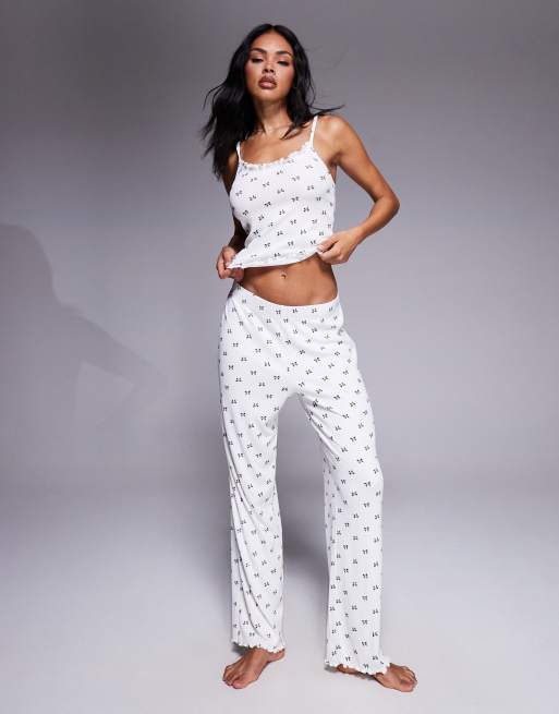 Boux Avenue - Set avorio con pantaloni e canottiera con fiocchi monocromatici