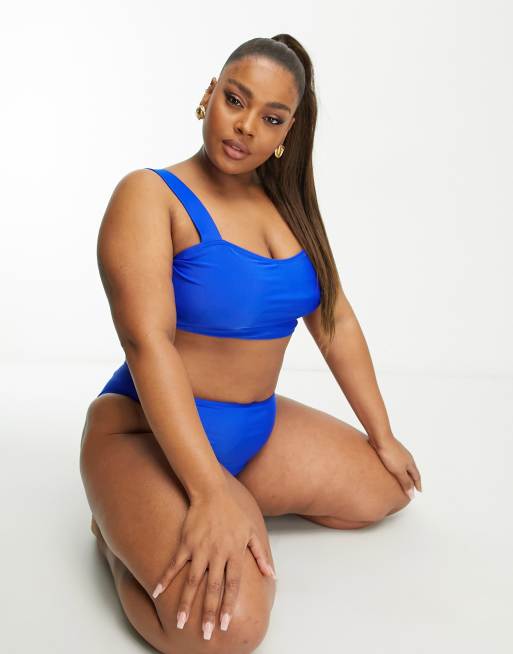 Brave Soul Plus - Top bikini blu cobalto con scollo squadrato
