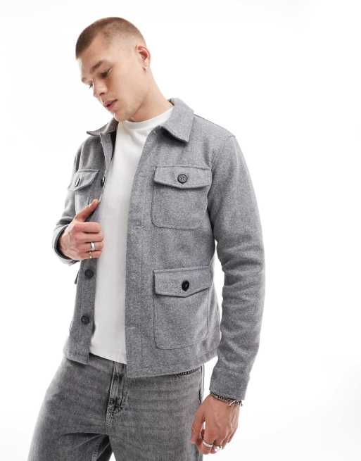Brave Soul - Camicia giacca in misto lana grigia