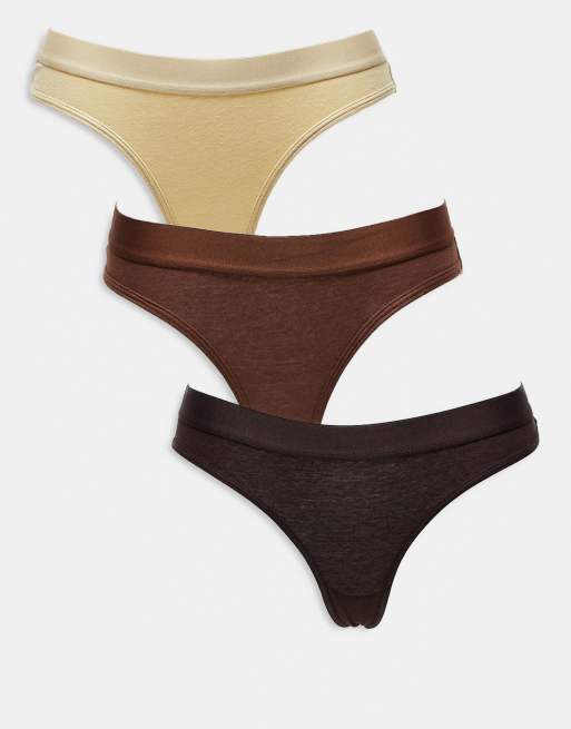 Brave Soul - Confezione da 3 perizomi in cotone marroni