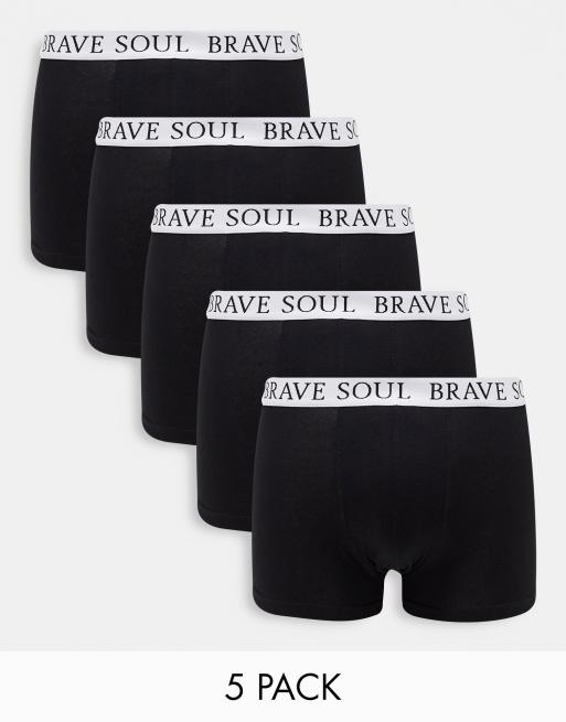 Brave Soul - Confezione da 5 boxer neri con fascia in vita con logo