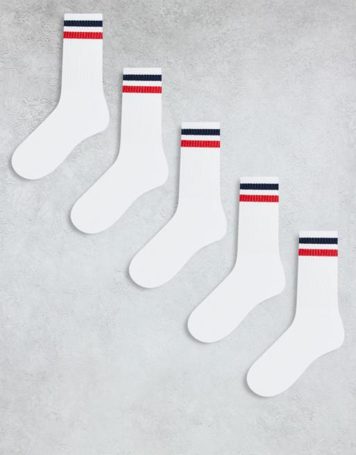 Brave Soul - Confezione da 5 paia di calzini sportivi a righe bianchi