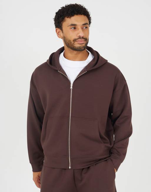 Brave Soul - Felpa con cappuccio comoda marrone con zip