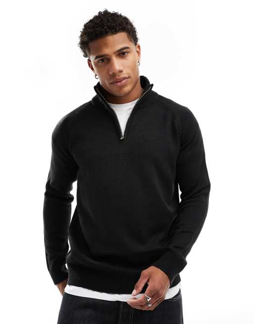 Brave Soul - Maglione nero di media pesantezza con zip corta