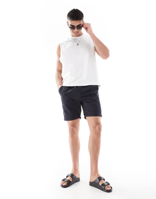 Brave Soul - Pantaloncini chino color blu navy con coulisse in vita