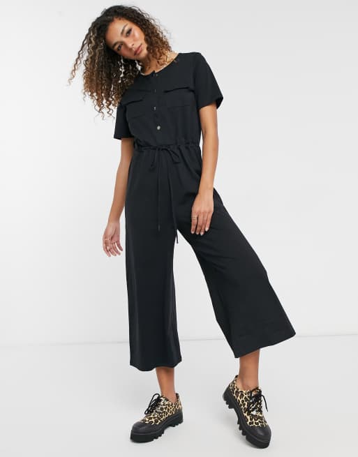 Brave Soul - Pearl - Tuta jumpsuit cargo nera allacciata in vita