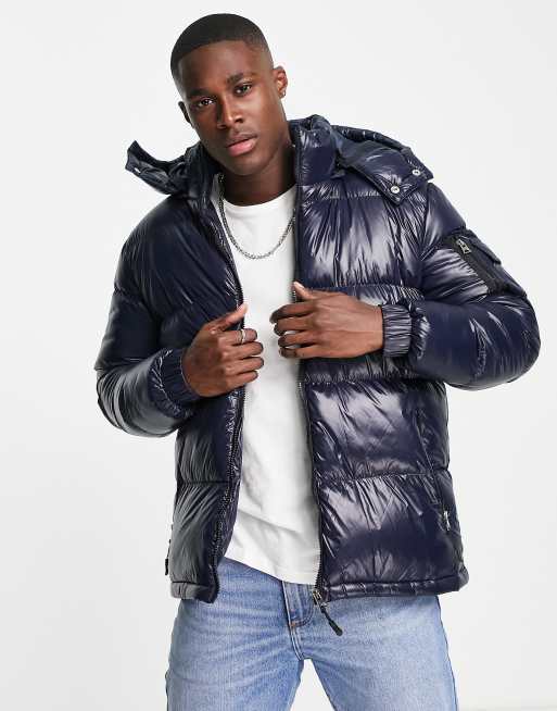 Brave Soul - Piumino lucido con cappuccio blu navy
