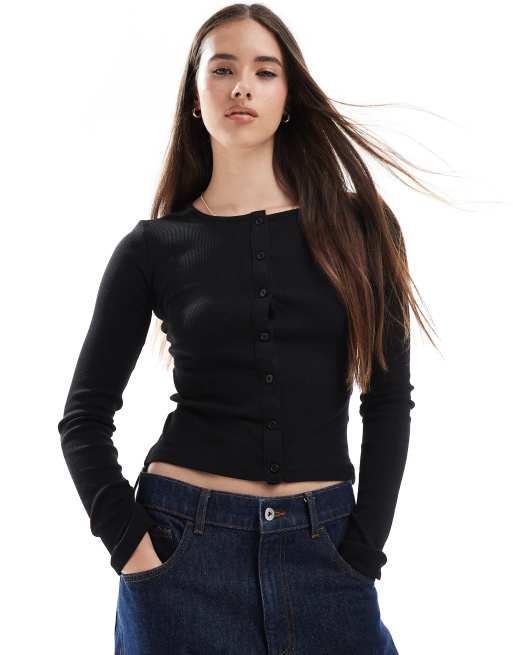 Brave Soul - Top a maniche lunghe aderente nero con bottoni