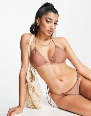Brave Soul - Top bikini a triangolo marrone con allacciatura sul retro