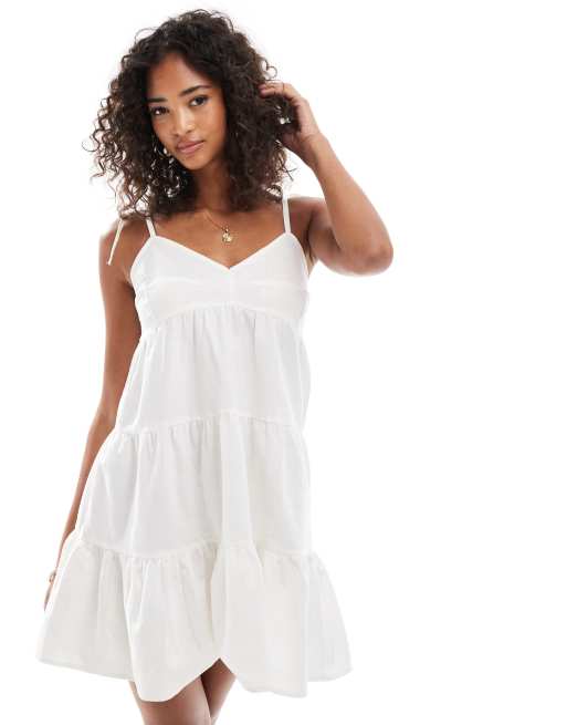 Brave Soul - Vestito corto svasato in misto lino bianco con spalline sottili