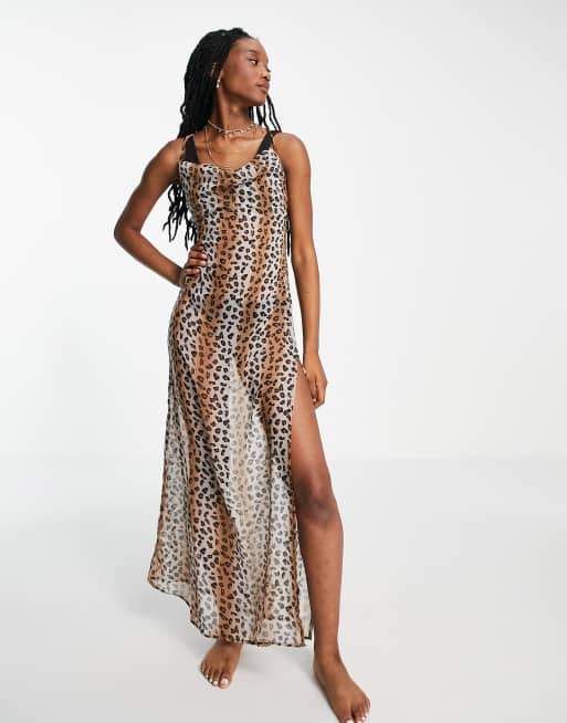 Brave Soul - Vestito da mare con scollo profondo sul retro e stampa leopardata