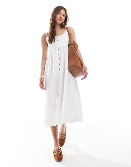Brave Soul - Vestito midi color panna con spalline sottili e bottoni