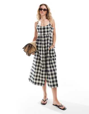 Brave Soul - Vestito midi con spalline sottili e bottoni nero a quadretti