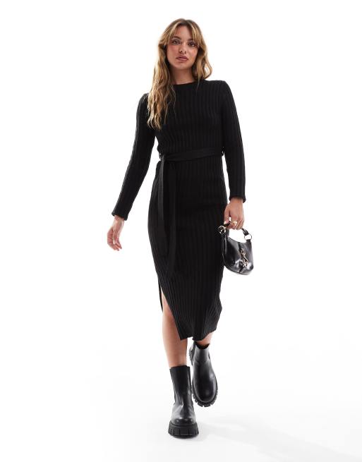 Brave Soul - Vestito midi in maglia nero con spacco