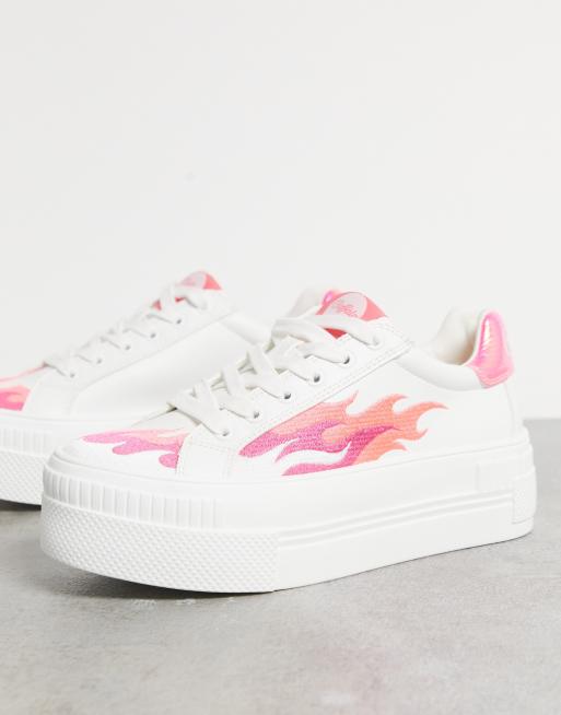 Buffalo - Paired Flames - Sneakers vegan-friendly con plateau bianche e rosa