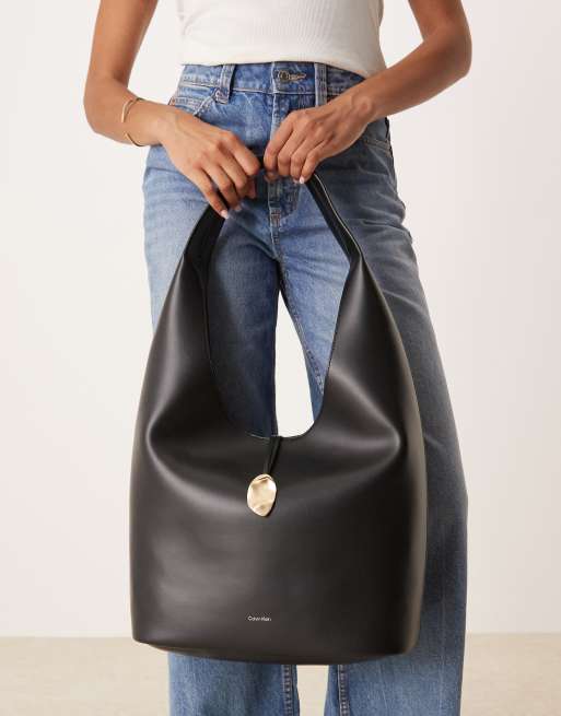 Calvin Klein Jeans - Borsa da spalla nera in pelle premium