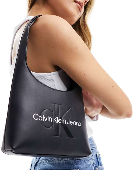 Calvin Klein Jeans - Borsa da spalla strutturata ad arco nera