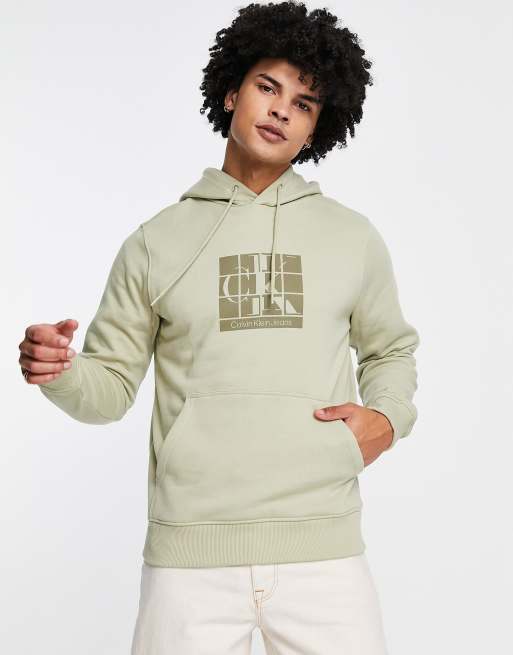 Calvin Klein Jeans - Felpa con cappuccio color pietra con logo