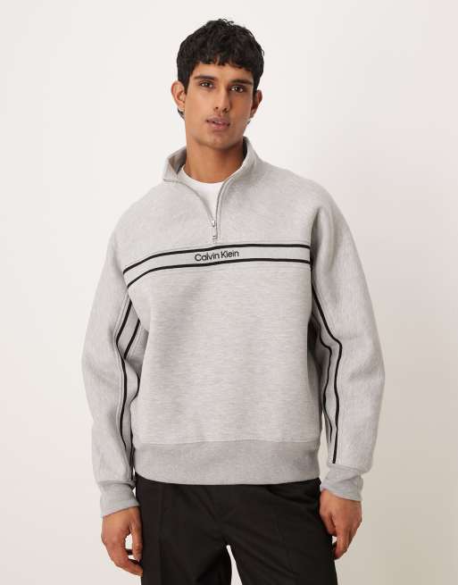 Calvin Klein Jeans - Felpa grigia con riga al centro e zip corta
