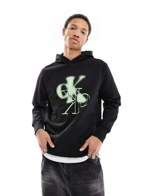 Calvin Klein Jeans - Felpa nera con cappuccio e logo effetto specchio