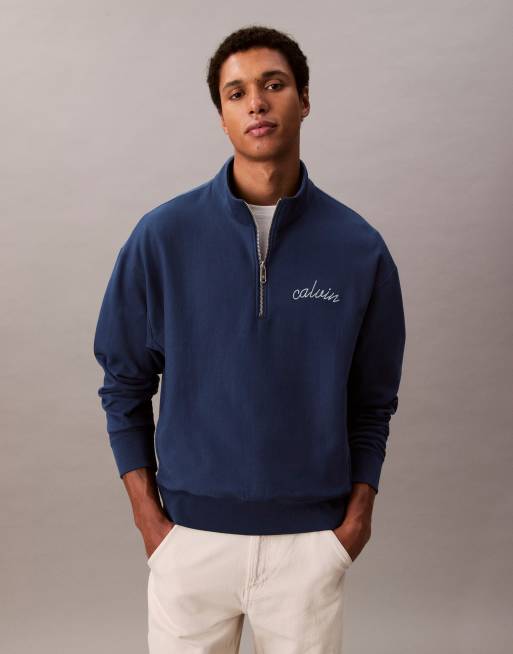 Calvin Klein Jeans - Felpa premium blu navy con logo e zip corta