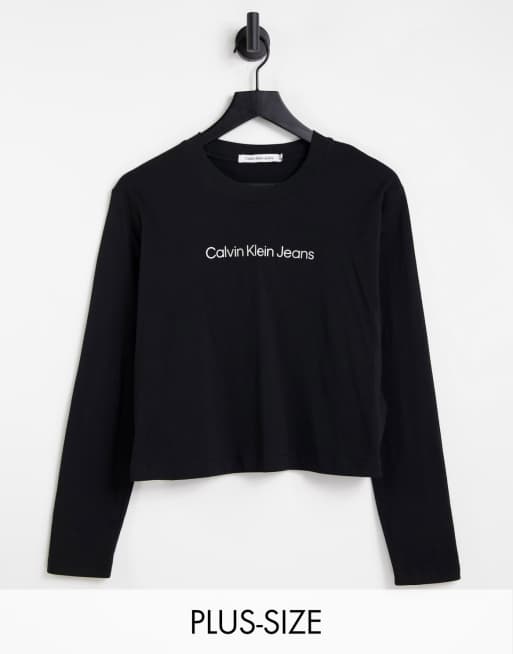 Calvin Klein Jeans Plus - Maglietta a maniche lunghe nera con logo classico
