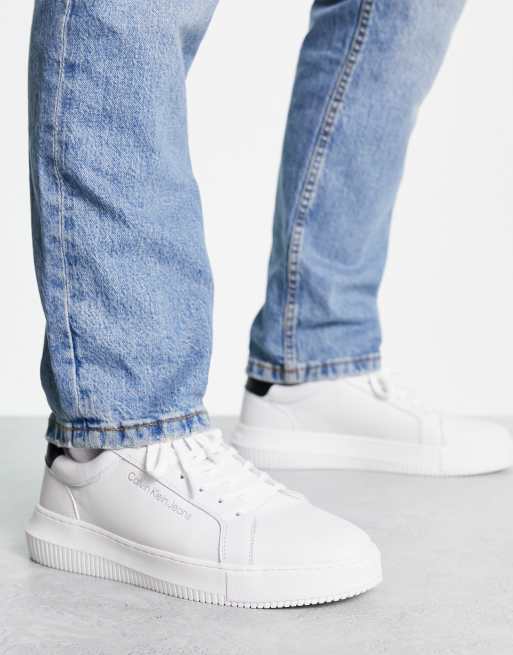 Calvin Klein Jeans - Sneakers stringate bianche con suola spessa cupsole