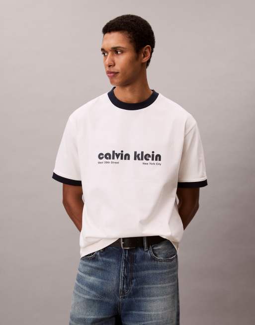 Calvin Klein Jeans - T-shirt bianco sporco rétro con bordi a contrasto