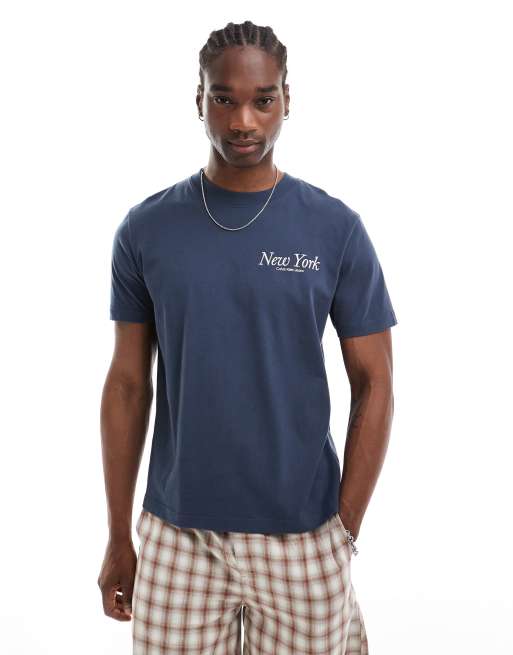 Calvin Klein Jeans - T-shirt blu navy con stampa "New York"