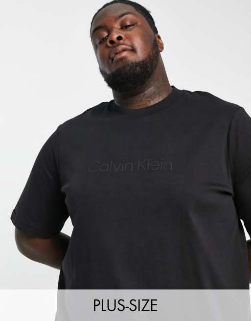 Calvin Klein Big & Tall - T-shirt squadrata nera con logo al centro