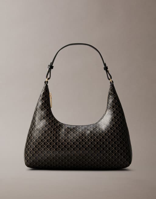 Calvin Klein - Borsa da spalla nera con logo a emblema
