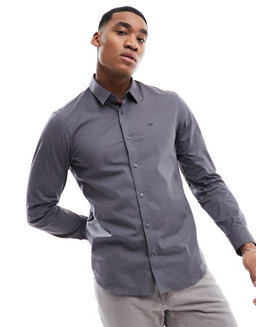 Calvin Klein - Camicia slim fit elasticizzata in popeline antracite