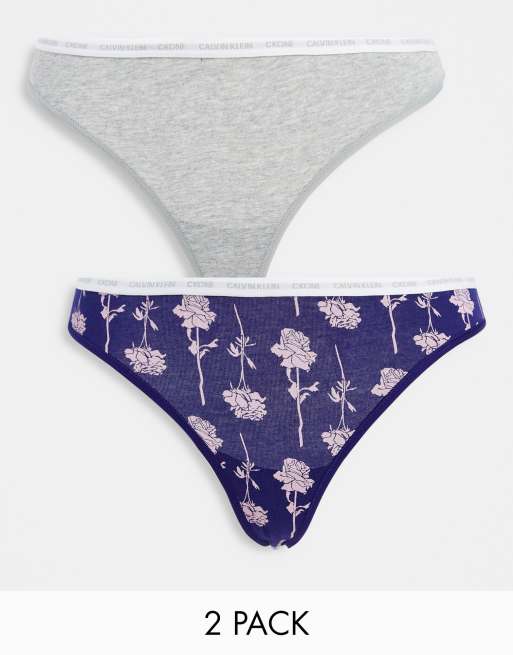 Calvin Klein - CK One - Confezione da due perizomi grigio e blu con stampa di rose e logo