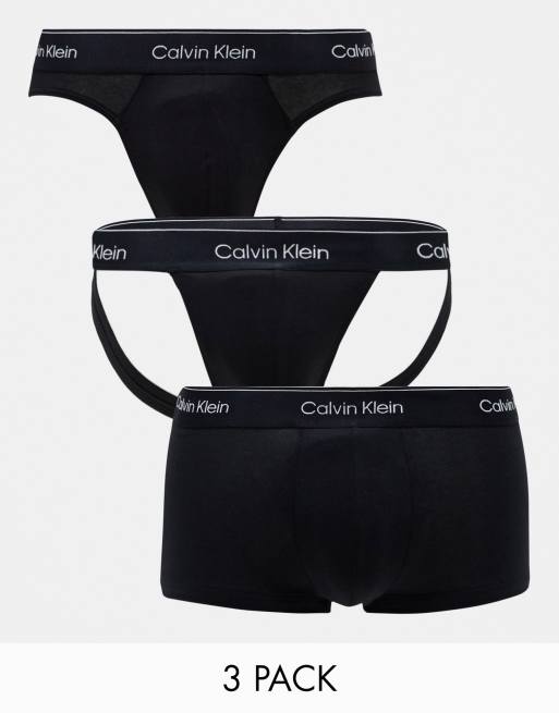 Calvin Klein - Confezione da 3 con boxer aderente, slip e sospensorio neri