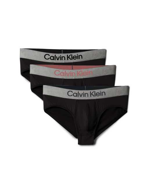 Calvin Klein - Confezione da 3 slip in microfibra elasticizzati neri con fascia grigia in vita