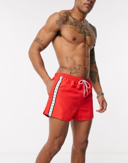 Calvin Klein - Core - Pantaloncini da bagno in tessuto riciclato rossi con fettuccia