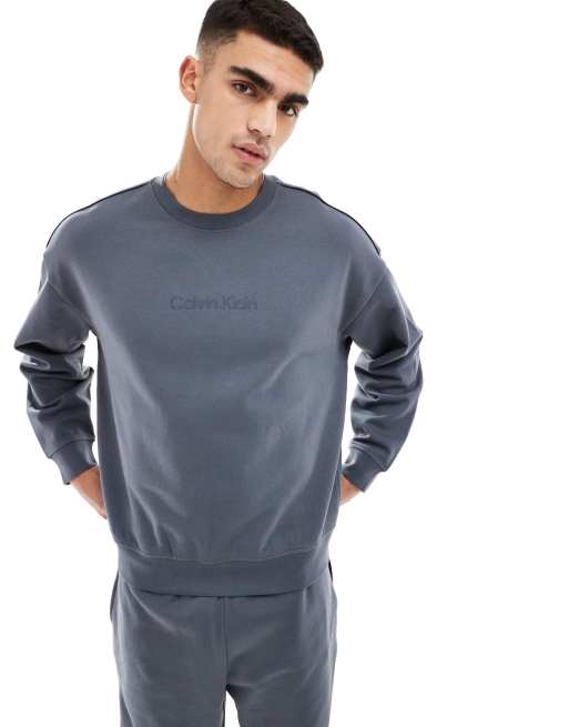 Calvin Klein - Felpa da casa blu con logo tono su tono