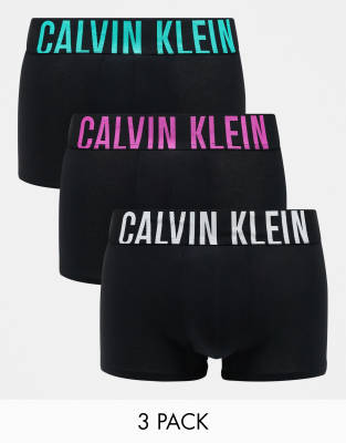 Calvin Klein - Intense Power Cotton Stretch - Confezione da 3 paia di boxer aderenti neri con elastico in vita colorato