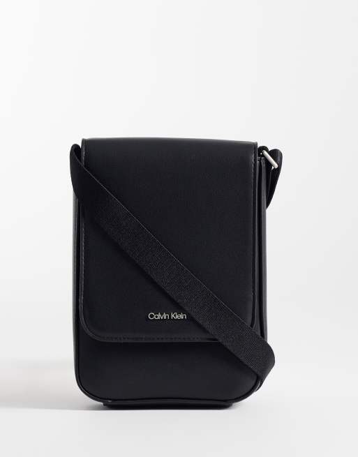 Calvin Klein Jeans - Borsa a tracolla nera con logo in rilievo