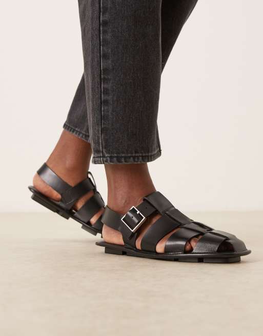 Calvin Klein Jeans - Sandali bassi in pelle neri con fibbia stile pescatore