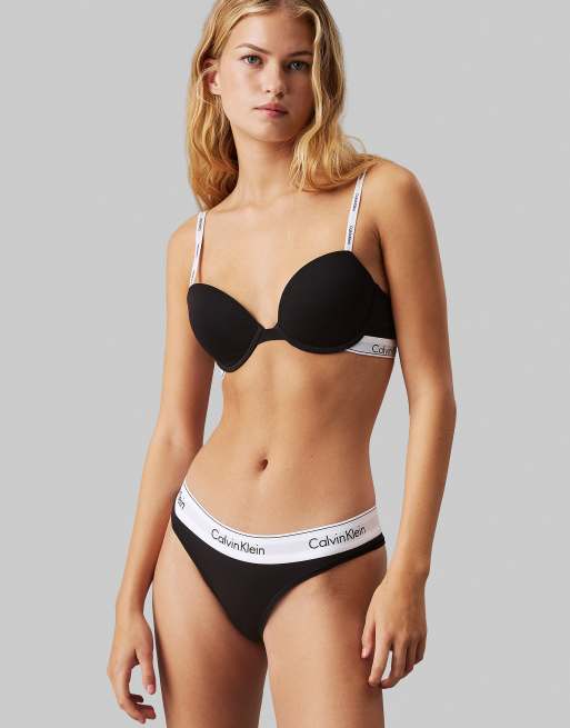 Calvin Klein - Modern Cotton - Reggiseno nero a mezza coppa con fodera leggera, ferretto e logo sulle spalline