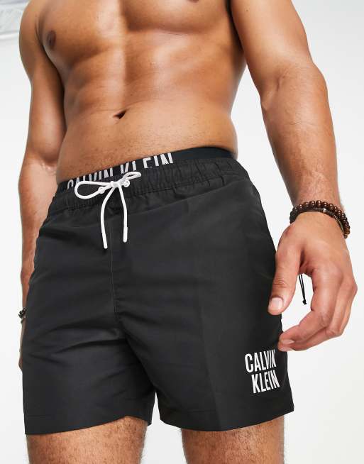 Calvin Klein - Pantaloncini da bagno neri con logo piccolo sulla coscia