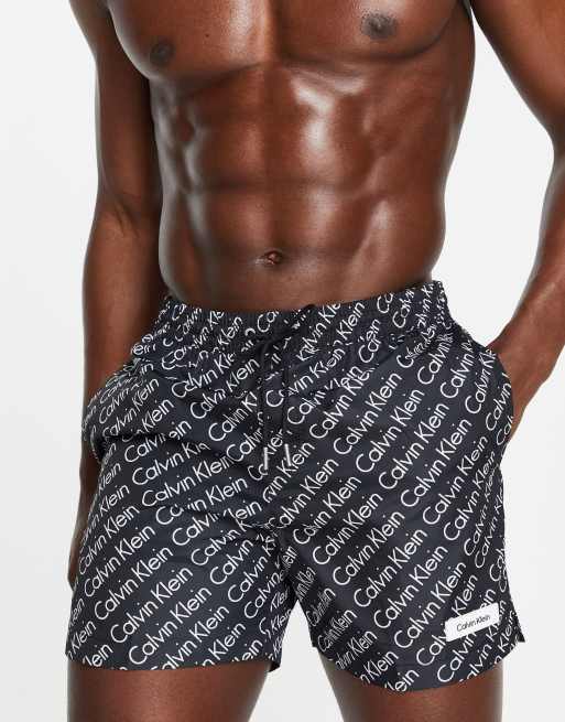 Calvin Klein - Pantaloncini da bagno neri con stampa di monogramma