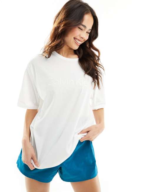 Calvin Klein - Pigiama bianco in puro cotone con T-shirt e pantaloncini